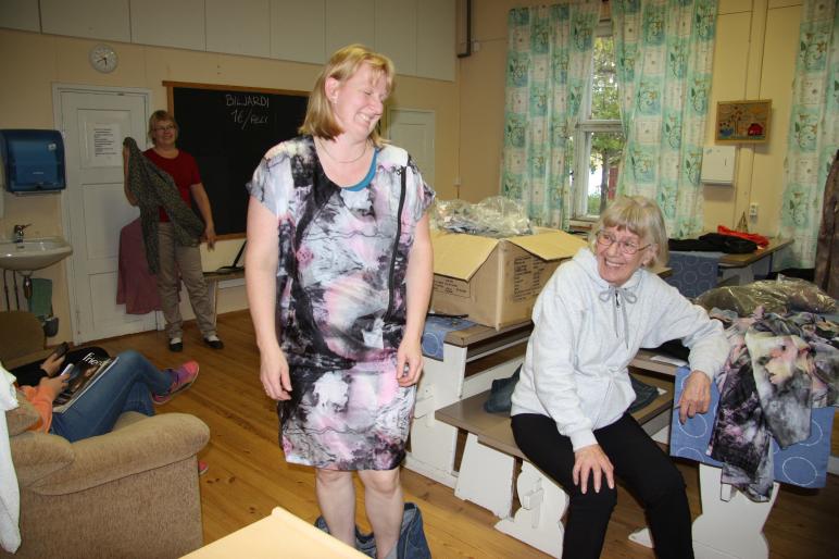 15.9.2013 Illalla sitten jatkoimme Friendtexin vaatekutsuille. Kiitokset kuuluu Minnalle, joka järjesti tämän tilaisuuden ( ja toimi myös iloisena mannekiininä) ja hauskaa oli naurukin oli välillä aikas herkässä huhhuh... Kiinnostuneita kyläläisiä oli, mikä on mukavaa, kun tapahtumia on. Jokaiselle taisi myös kertyä jotain kotiin vietävää. Tarjoamistakin oli siinä vaate-esitysten lomassa kahvia, teetä kaikkea hyvää mutusteltavaa. Marja-Leenakin toimi toisena mannekiininä. Tarjolla oli myös ihania kenkiä ja upeita hopeakoruja vaatteiden lisäksi. Tälläiset tapahtumat tuovat raikkaan tuulahduksen aina tänne Nummenkylään.