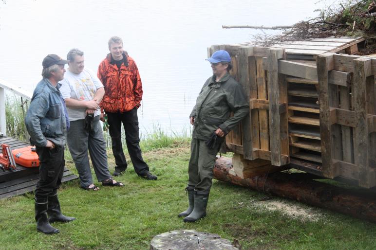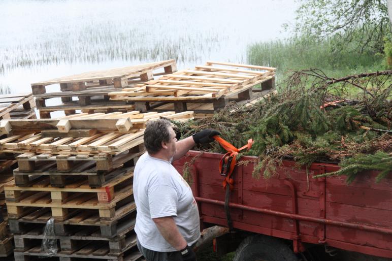 16.6.2013 Kokonrakennusporukka saapui paikalle sateesta huolimatta, ei ollut miehet sokerista tehty. Kyllä se talkoohenki on hienoa. Sadekkin loppui ja rakentaminen alkoi. Tulihan se kokko sitten valmiiksi ja nyt jännätään kuinka meidän käy juhannusaattona, kun pitää lautta vesille laskea ja hinata koulun rantaan juhannusjuhlille. Siis tuliko siitä sukeltava vai kelluva kokko. No tottaka kelluva, että juhannusväellä on komeaa katseltavaa Nummenkylän ensimmäisissä Juhannusjuhlissa. Taitaa olla ensimmäinen juhannusjuhla koululla reiluun sataan vuoteen. Olisiko tässä uuden perinteen alkua saada kyläläiset kokoontumaan?