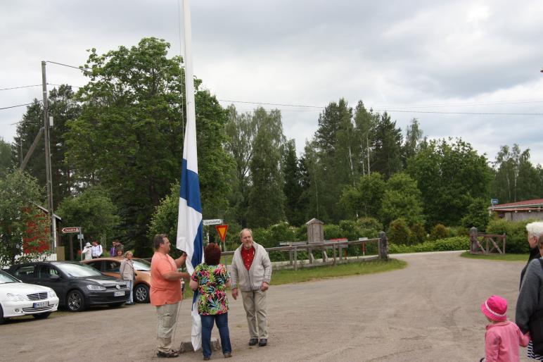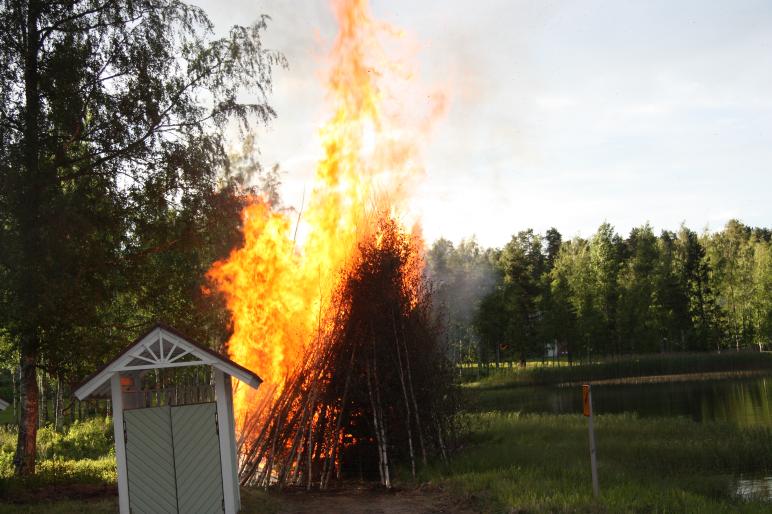 Juhannusaatto sujui Nummenkylässä rauhallisin mielin. Väkeä oli saapunut viettämään juhannusta Nummenkylään läheltä ja kaukaa. Ilta alkoi lipunnostolla ja Hämeenlaululla. Seuraavaksi sitten kuunneltiin haitarin soittoa ja taiturina oli Harri Drischenko, paistettiin lettuja ja makkaroita, heitettiin tikkaa ja ketjua. Buffetti oli pullollaan kylän emäntien ihania leipomuksia. Kylän sanataituri Erkki Tyrväinen esitti Hiski Salomaan Fiskarin polkan, Jarmo Haaviston säestyksellä. Hän lausui myös muutaman mukavan runon. Sen jälkeen alkoi karaoken musiikki virrata saliin ja laulajia löytyi mukavasti ja laittoipa joku myös jalalla koriasti eli tanssahdeltiin myös. Illan kohokohtahan olikin sitten kokon sytyttäminen, jonka kylän miehet edellisenä iltana saivat valmiiksi, toki talkootyöllä. Ja olihan se komia. Iso kokko Pursunjärven rannassa. Siitä sitten väki alkoi pikkuhiljaa viimeisten valssien jälkeen kotiutumaan. Kiitos kaikille vieraille ja talkooväelle! Uutta juhannusta odotellen :)