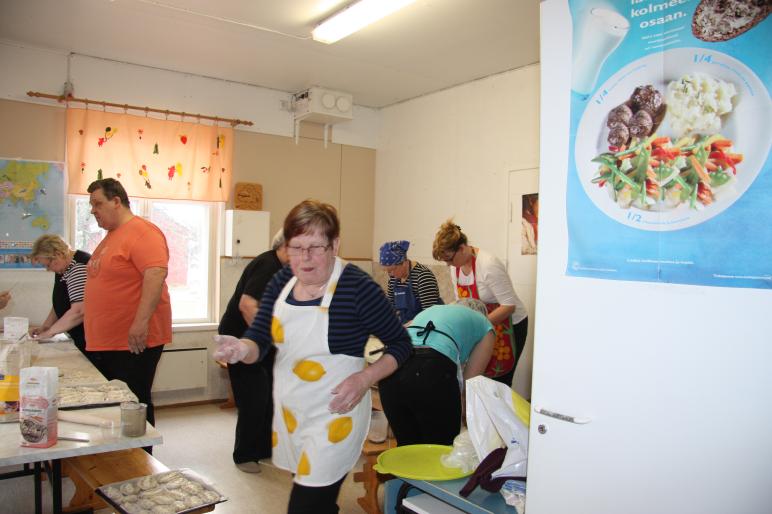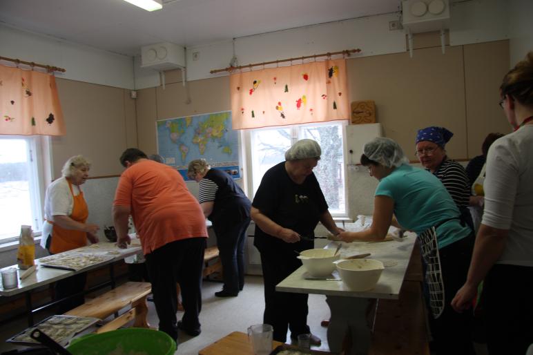 8.3 Naistenpäivää vietettiin karjalanpiirakkakurssin merkeissä koululla. Piirakka oppiin tuli 12 innokasta leipojaa ja Mirja Metsä-Mattila touhusi pääleipurina opastaen meitä muita. Uskaltautuipa sinne naisporukkaan yksi rohkea mieskin, mikä piristi kummasti. Piirakoita tehtiin oikein urakalla ja mahdottoman hyviä niistä tulikin. Täytyihän niitä maistella lämpinä munavoin ja kahvin kera.