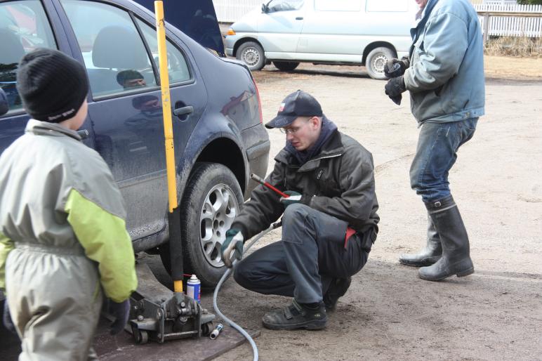 12 kyläläistä kannatti yhdistystä tuomalla ajoneuvonsa renkaiden vaihtoon, se oli tosi hienosti tehty.