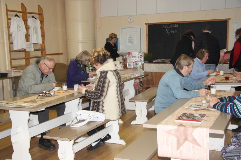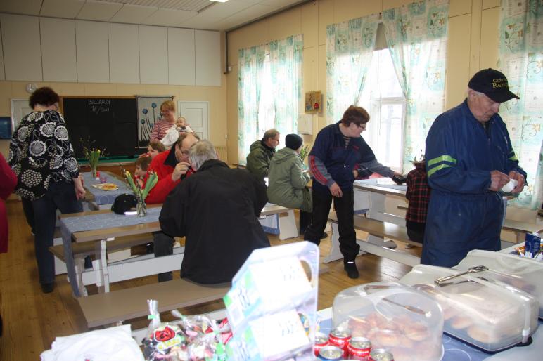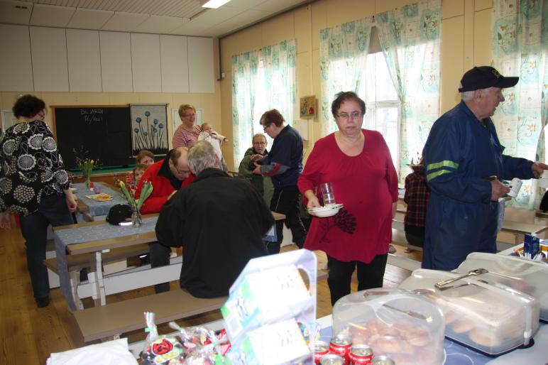 Väkeä oli mukavasti reilut 60 henkeä. Ei mennyt ahkerien emäntien ja talkoolaisten työ hukkaan, heille suuri kiitos. Kiitos myös kaikille, jotka lahjoittivat tuotteita tapahtumaan.